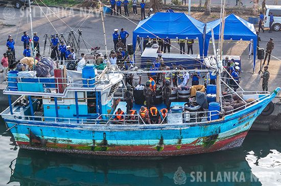 In a decisive strike against the drug menace, the Sri Lanka Navy intercepted a local multiday fishing trawler (01) carrying a staggering haul of suspected narcotics in the seas southwest of the island. This operation, carried out under the national mission “A Nation United”, resulted in the apprehension of six suspects (06) and the seizure of the trawler used to smuggle the illicit substance.