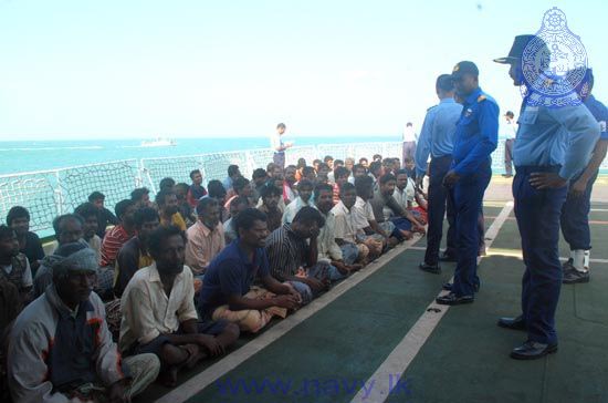 The Sri Lanka Navy assisted in the repatriation of the third batch of one hundred eleven Indian fishermen with fifteen fishing boats on 25th January 2014. They were handed over to the Indian Coast Guard Ship “Vigraha” at the International Maritime Boundary Line off Kankasanthurei.