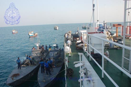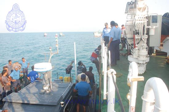 The Sri Lanka Navy assisted in the repatriation of 21 Indian fishermen and 10 fishing trawlers on 31st March 2014. They were handed over to the Indian Coast Guard Ship “Abheek” at the seas off Mannar. Sri Lanka Navy Inshore Patrol Craft were deployed for the humanitarian mission.