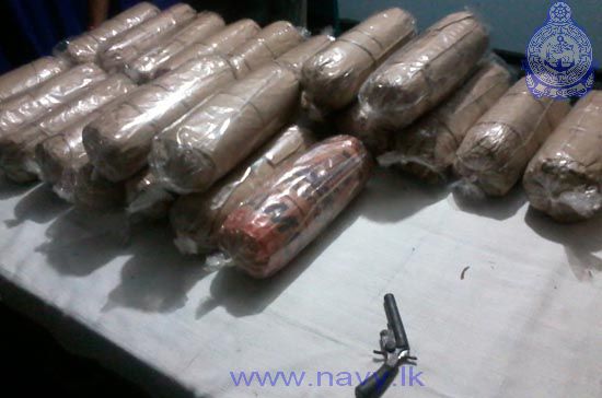 Naval troops attached to SLNS Thambapanni of the North Western Naval Command arrested 04 persons with 15 kilograms of cannabis and a shot gun (Made in Sri Lanka) at the Nugawala Junction in Puttalam on 05th April 2014. The suspects and the arrested items will be handed over to Kobeigane Police for legal action.