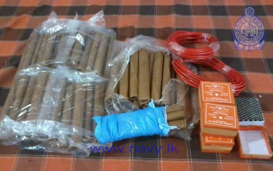 Naval Personnel attached to SLNS Thambapanni of the North Western Naval Command on information received recovered 10 kilograms of Gelignite (100 Sticks), 500 numbers non electric detonators and 15 feet two safety fuse rolls with one person in the general area of Anuradhapura on 13th June 2014. The arrested person with the explosives were handed over to Anuradhapura Police for further investigations.