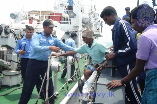 Sri Lanka Navy assisted the repatriation of 37 Indian fishermen on 12th July 2014. They were handed over to the Indian Coast Guard Ship “Rajtarang” at the International Maritime Boundary Line off Thalaimannar. Naval patrol craft attached to the North Central Naval Command were deployed for the humanitarian mission.