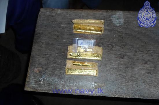 Naval troops attached to SLNS Gajaba and SLNS Thammanna of the North Central Naval Command on information received arrested 02 persons, who were attempting to smuggle 1.075 kilograms of gold to India, on the beach of Ussimukkanthurei on 16th December 2014. An FGD and a fishing net, which had been used to conceal the six gold pieces were also taken into naval custody.
