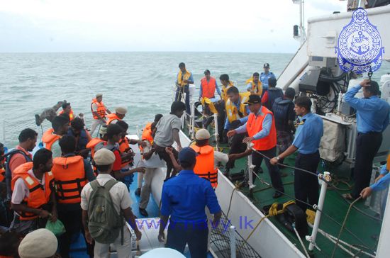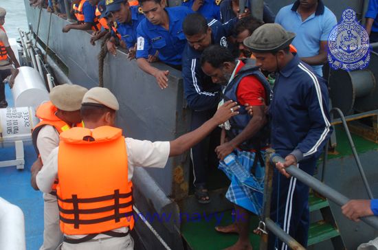 Sri Lanka Navy assisted in the repatriation of 30 Sri Lankan and 66 Indian fishermen on 23rd December 2014. The Sri Lankan fishermen were taken over from the Indian Coast Guard Ship “Vishwast” at the International Maritime Boundary Line off Kankasanthurai by Sri Lanka Naval Ship Ranagaja attached to the Northern Naval Command and Sri Lanka Coast Guard Vessel CG 42. Meanwhile, 66 Indian fishermen, who had been in Sri Lankan custody, were also handed over to ICGS “Vishwast” at the same location.