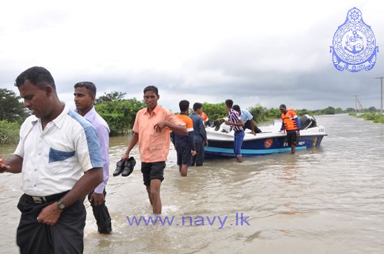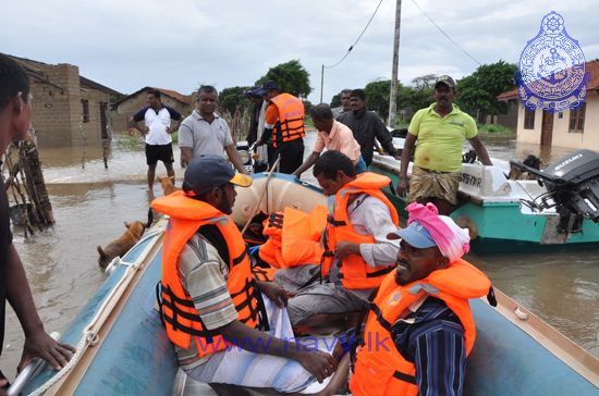 The navy has extended its flood relief operations to the Matale and Mannar districts with effect from 25th December 2014. The Navy flood relief teams are now in deployment in 07 districts that include Trincomalee, Batticaloa, Polonnaruwa, Anuradhapura and Ampara districts. One hundred forty-nine (149) naval personnel, 62 FGDs and 05 IRBs are rendering assistance in coordination with DMC and relevant Divisinal Secretariats in the areas affected by the prevailing inclement weather.