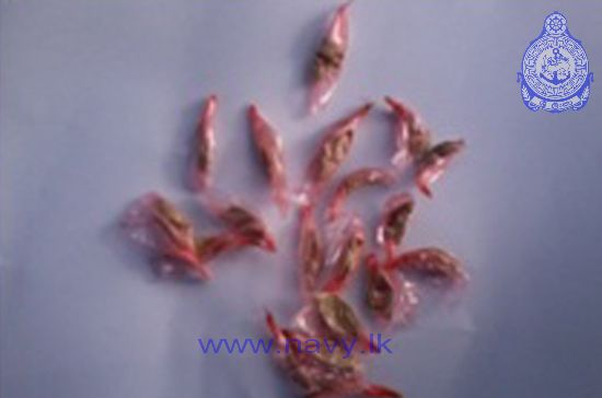 Naval troops attached to SLNS Thambapanni of the North Western Naval Command on information received arrested a drug peddler with 0.95 grams of heroin (19 Packets) in Mullikulam on 30th December 2014.
