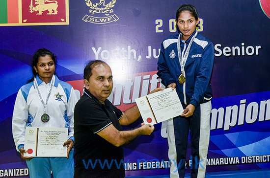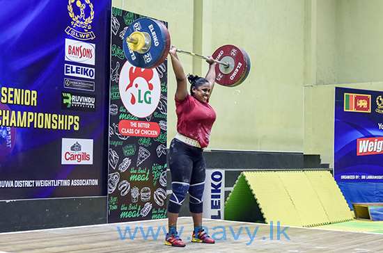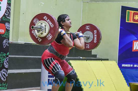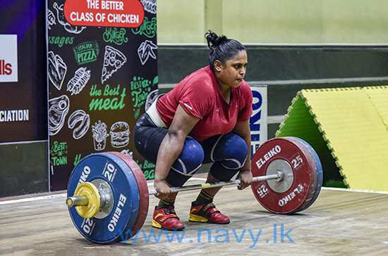 ඒ අනුව, කිලෝ ග්රෑම් 45, 59 සහ 87 බර පංති යටතේ පිළිවෙලින් තරඟ වැදුනු සාමාන්ය කාන්තා නැවි ජේජීයූආර් ගුණතිලක, බල කාන්තා නැවි ඩබ්සීඑම් වර්ණකුලසූරිය සහ බල කාන්තා නැවි බීසී ප්රියන්ති රන් පදක්කම් දිනා ගන්නා ලද අතර, බල කාන්තා නැවි බීසී ප්රියන්ති විසින් කිලෝ ග්රෑම් 87 ට වැඩි බර පංතිය ස්නැච් ක්රමය යටතේ කිලෝ ග්රෑම් 90 ක්, ක්ලීන් ඇන්ඩ් ජර්ක් ක්රමය යටතේ කිලෝ ග්රෑම් 113 ක් හා මුළු බර එකතුව 203 ක්ද ඔසවමින් නව ශ්රී ලංකා තරඟ වාර්ථා තුනක් පිහිටුවීමටද සමත් විය.