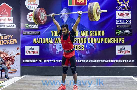 ක්රීඩා අමාත්යංශයේ මූලිකත්වයෙන් ශ්රී ලංකා බර ඉසිලීමේ සංගමය විසින් සංවිධානය කරනු ලැබූ 2023 ජාතික බර ඉසිලීමේ තරඟාවලිය සඳහා ත්රිවිධ හමුදාව ඇතුළු දිවයිනේ ප්රකට බර ඉසිලීමේ ක්රීඩා සමාජ නියෝජනය කරමින් ක්රීඩක ක්රීඩිකාවන් රැසක් සහභාගීවිය. එහිදී නාවික හමුදා කාන්තා බර ඉසිලීමේ කණ්ඩායම රන් පදක්කම් 03 ක්, රිදී පදක්කම් 02 ක් සහ ලෝකඩ පදක්කමක් දිනාගනිමින් ගුවන් හමුදා කාන්තා බර ඉසිලීමේ කණ්ඩායම සමඟ සම ශූරතාවය දිනා ගැනීමට සමත් වූ අතර, නාවික හමුදා පිරිමි බර ඉසිලීමේ කණ්ඩායම රන් පදක්කම් 02 ක්, රිදී පදක්කමක් සහ ලෝකඩ පදක්කම් 02 ක් දිනාගනිමින් තරඟාවලියේ පිරිමි අංශයේ තෙවන ස්ථානය දිනාගැනීමට සමත් විය.