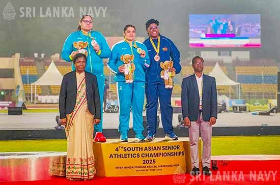 Sri Lanka Navy athletes made the nation proud by securing medals at the South Asian Athletics Championships 2025 held in Ranchi, India, from 24 to 26 Oct 25. The championship brought together top athletes from South Asian countries, showcasing regional athletic excellence.