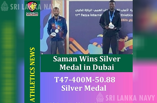 Leading Seaman SMASM Subasinghe of the Sri Lanka Navy brought honour to the nation by securing two Silver Medals at the World Para Athletics Grand Prix 2026, held in Dubai, United Arab Emirates, from 08 to 14 Feb 26.